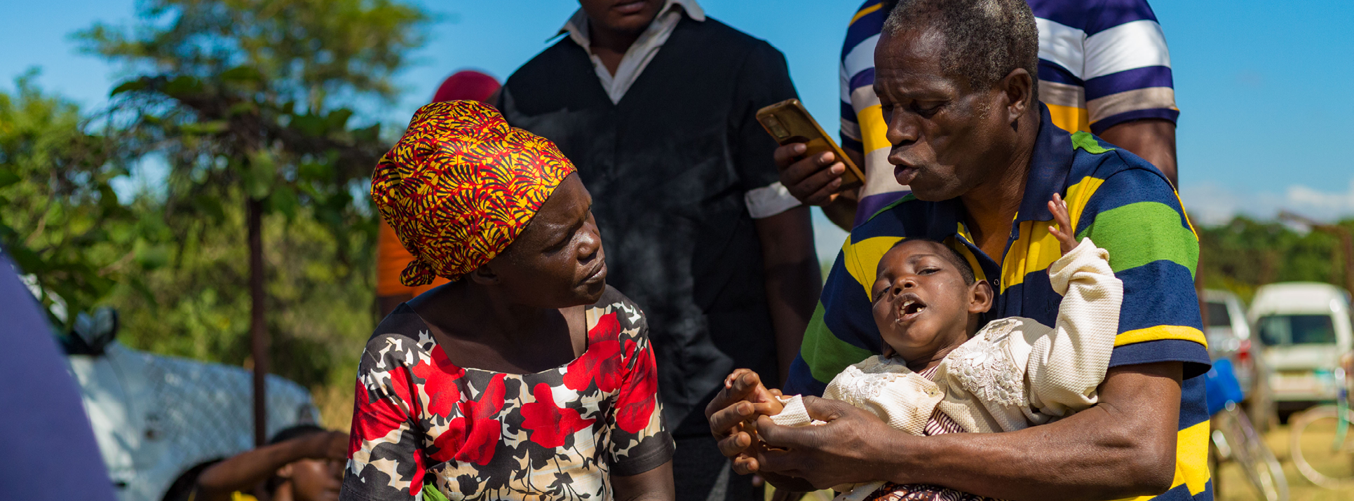 [Alt text: An African family sits outdoors; a father gently holds a child with a physical disability while speaking with the mother. Their interaction radiates warmth, care, and resilience—reflecting love, dignity, and the strength of family support in the face of challenges.]